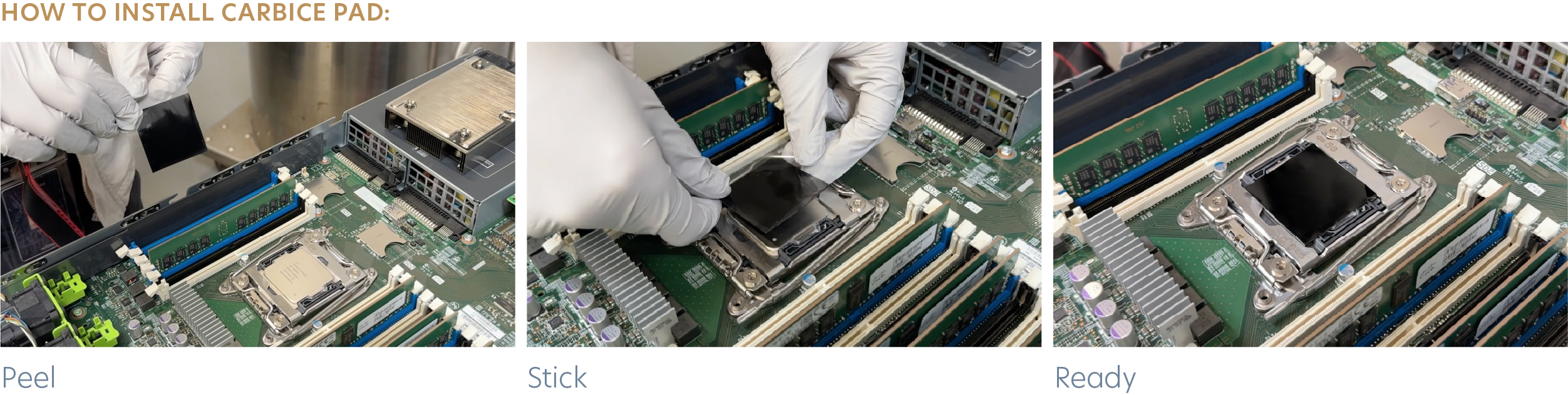 Image depicting simple peel and stick assembly process for the Carbice Pad solution.
